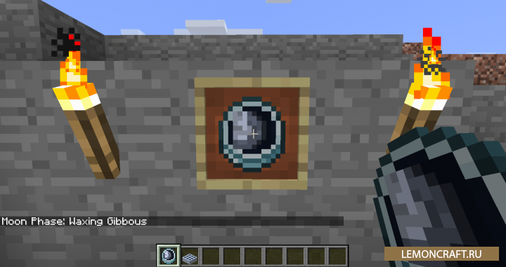 Мод на лунные часы Urkaz Moon Tools добавит в игру новый инструмент с помощью которого вы сможете быстро определить фазы луны. Кроме этого в игре появится специальный датчик, который будет создавать редстоун-сигнал, мощность которого будет зависить от фазы луны.